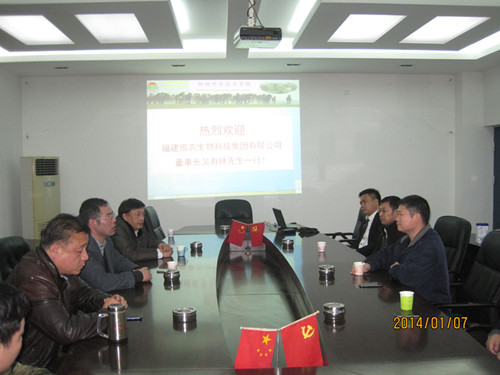 2014年1月7日下午,福建傲农生物科技集团有限公司董事长吴有林先生一行到访公司,就傲农集团与公司深入合作交流举行洽谈会。经理瞿明仁教授、公司党委书记陆伟教授、副经理丁能水教授、公司党委副书记杨秀江老师、兽医系副主任郭小权教授、院团委书记管国泉老师参加了交流会。