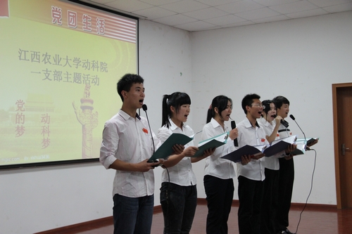 5月24日晚,该院员工党支部再次举行此新模式的组织生活会。此次组织生活会继承了前几次的创新方案,升华其活动形式,使生活会的主题更突出,内容更丰富,意义更深刻,特色更鲜明,成效更显著。主题活动伊始,全体成员收看了公司党员自己准备的关于“中国梦”的VCR,表达自己炽热的中国心。接下来由两位员工党员结合PPT为大家讲述《感动党的人物》,赞扬党员的精神,催人泪下。之后的歌曲《明天会更好》给在场的所有党员激励与鼓励;朗诵《中国梦》则更是道出了学院所有党员的中国梦,党的梦,动科梦!紧接着以创新的有奖竞答方式学习了十八大新党章,全场党员踊跃竞答,互相学习。《说段相声给党听》的相声表演则带给党员们的不仅仅是欢乐,更是对党的更深的认识。最后,组织生活会在一首《精忠报国》的大合唱中顺利开展完毕。