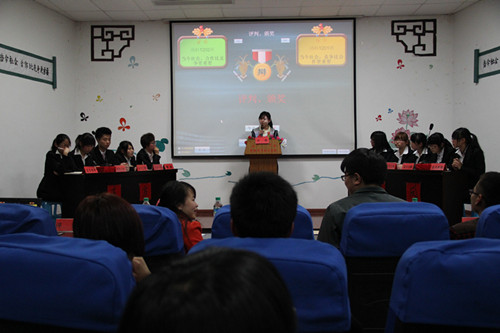 经过一番鏖战,最终进入总决赛的正反双方分别是动科1202班和动科1201班。本场辩论赛的正方观点是“当今社会,竞争比合作重要”,反方的观点是“当今社会,合作比竞争重要”。 开场立论陈词环节,双方犀利的言辞赢得了在场所有观众的热烈掌声。有问必答环节,更是争锋相对,你追我赶。在面授机宜环节中,两方教练使出浑身解数为队友支招,为赛事增色不少。而自由辩论、烽火再起环节,则使场上气氛愈加激烈。在总结陈词中双方都发起最后的进攻。整场比赛精彩不断,双方的表现更是让评委难以抉择,经评委离席商讨,最终动科1202班夺得冠军,动科1201班黄冰冰,动科1202班的厉曼飞获得本场辩论赛的“最佳辩手”。