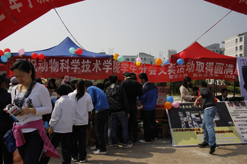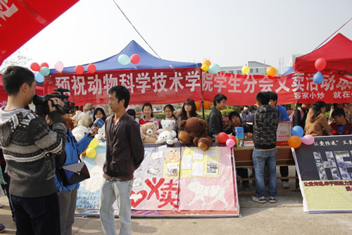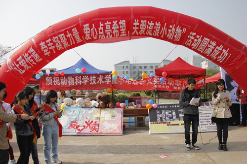 此次活动以“让爱传递,牵手凝聚力量,爱心点亮希望,关爱流浪小动物”为主题。在义卖活动现场,小动物保护协会带来了曾经接受救助的狗狗们,更加唤起了同学们的爱心。义卖活动现场热闹非凡,志愿者们热情的向过往的行人介绍他们的活动,希望大家都能奉献出自己的爱心,齐心协力,传递爱心。经过志愿者们一天的不懈努力,“让爱传递”义卖募捐活动圆满落幕。