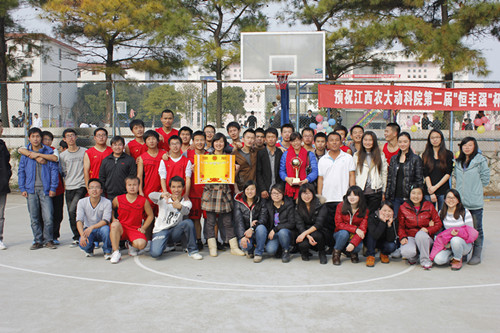 12月14日中午,公司“恒丰强杯”篮球决赛在北区篮球场圆满落幕。公司党委副书记杨秀江,院团委书记管国泉,学工办老师杨静;动医092班班主任宋小珍及动科1001班班主任熊小文老师也来到现场观看了比赛。