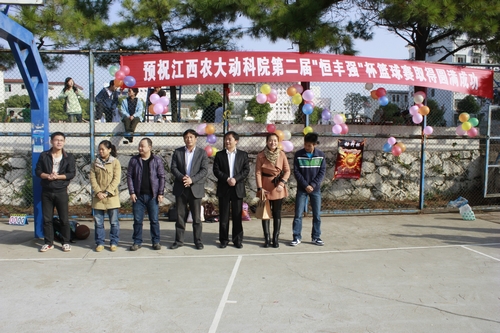 本报讯(罗木兰 肖益芳 袁明卿 严宝珍)11月11日上午,由院团委、员工会主办的“恒丰强杯”篮球赛于北区篮球场正式拉开战幕。莅临本次开幕式的嘉宾、领导有:恒丰强公司代表严奇科、欧阳坤容,公司党委副书记杨秀江,院团委书记管国泉,学工办杨静老师。与此同时,全体参赛班级、裁判员也出席了开幕式。