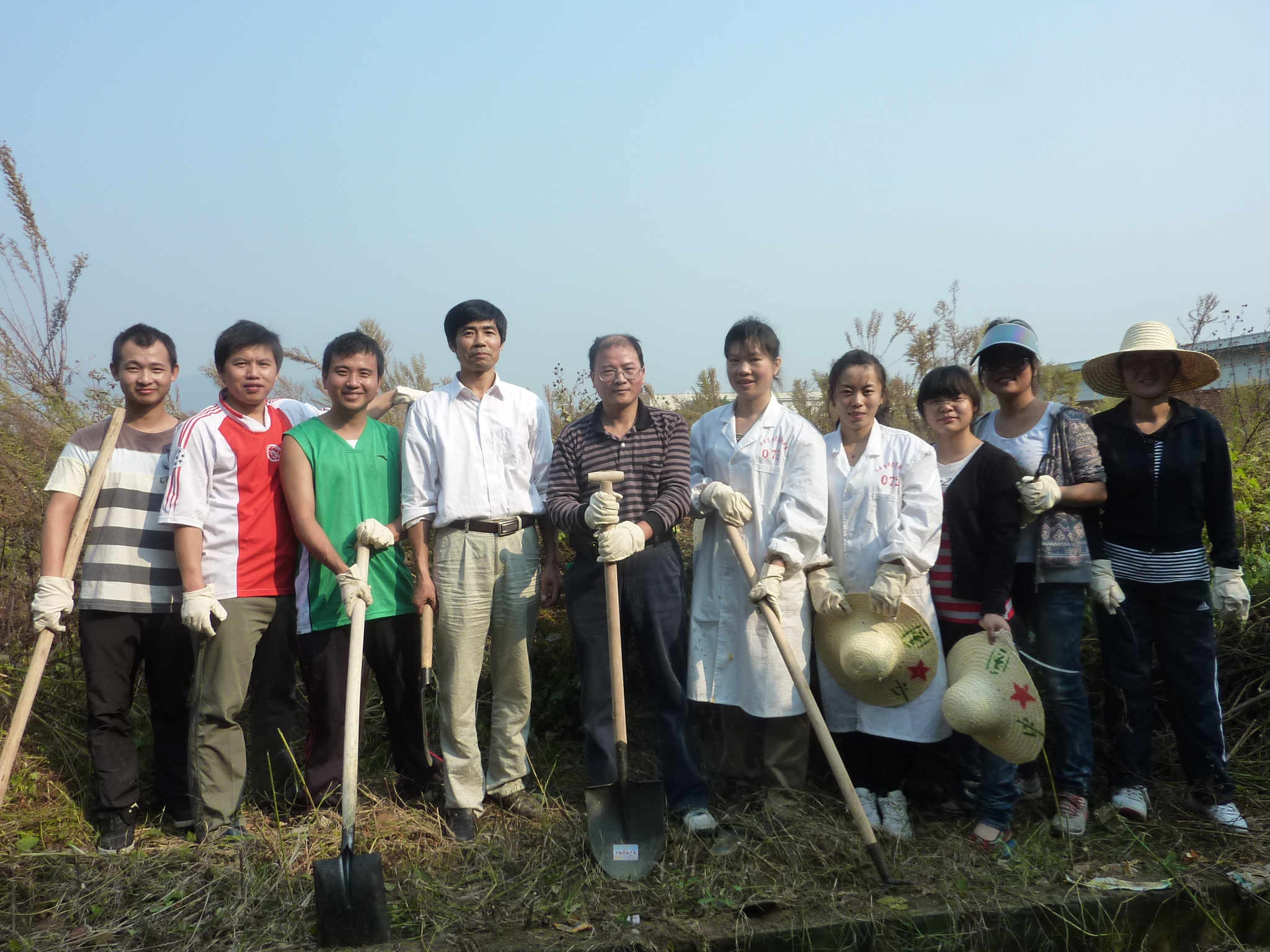 10月23日29日上午,结合党员创先争优活动的开展,公司水产支部组织支部党员及全系教师、水产养殖专业研究生、本科生志愿者在即将验收交付使用的动科院水产基地举行了一次“自己动手,促进发展”为主题的党支部活动。在鲜艳的红旗下,大家各自挥舞着手中的锄头、铁锨、镰刀等,平整地面,清理杂草,披荆斩棘、干得热火朝天。大家不怕脏、不怕累,发扬了艰苦奋斗的优良作风,经过2次辛勤劳作,基地中的杂草基本被清理干净,面貌焕然一新。原本需要2000多元费用的基地除草工作,在支部党员及师生志愿者的共同努力下得以圆满完成。