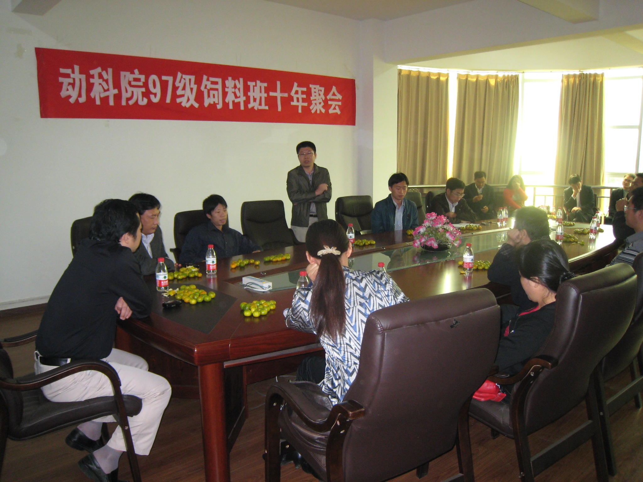聚会过程中,每个班都举行了座谈会。会上,同学们在介绍各自经历、现况及感想打算的同时,都对母校老师大学四年的培养表示了感谢。经理瞿明仁、公司党委书记熊红华、副书记杨秀江、副经理游金明、丁能水及部分教师应邀参加了员工们的座谈会,院领导就学院的情况给员工作了较详细的介绍,参会的领导老师相继发言,大家对员工们十年中取得的成就感到高兴,并对01届同学今后的发展谈了各自的看法和建议,语言真挚,充满关怀。在畜牧班员工座谈当中,董事长黄路生教授也抽空来到会场看望校 友并讲话、合影。