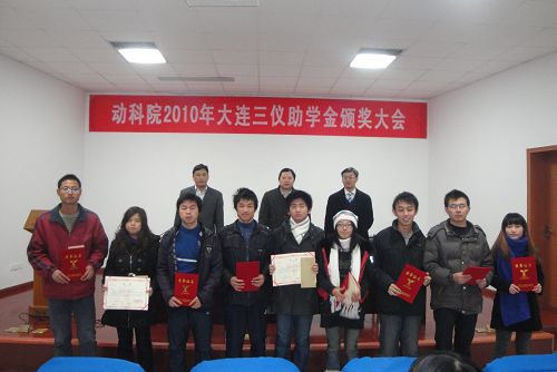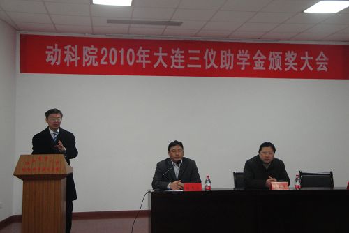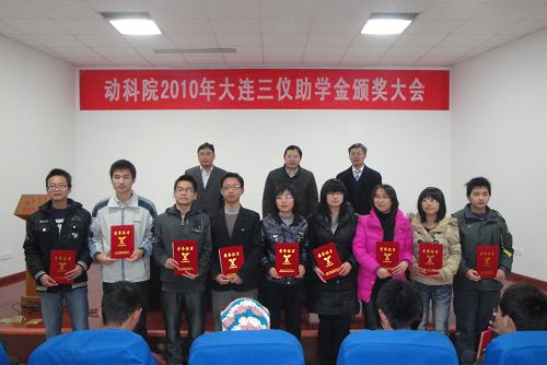 1月9日上午,动科院2010年大连三仪助学金”发放仪式于院201报告厅隆重举行。仪式由院员工党支部书记杨秀江主持,公司党委书记熊红华、大连三仪集团副董事长江庆国出席仪式。