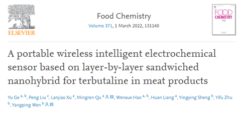 近日,公司瞿明仁教授与化学和材料学院文阳平教授在食品领域TOP期刊Food Chemistry(IF=7.514)杂志上在线发表了题为“A portable wireless intelligent electrochemical sensor based on layer-by-layer sandwiched nanohybrid for terbutaline in meat products的研究论文。瞿明仁教授和文阳平教授为本论文通讯作者,2020级动物营养与饲料科学专业博士研究生戈钰为本论文第一作者,本研究工作得到了国家自然科学基金和国家现代农业产业技术体系资助。