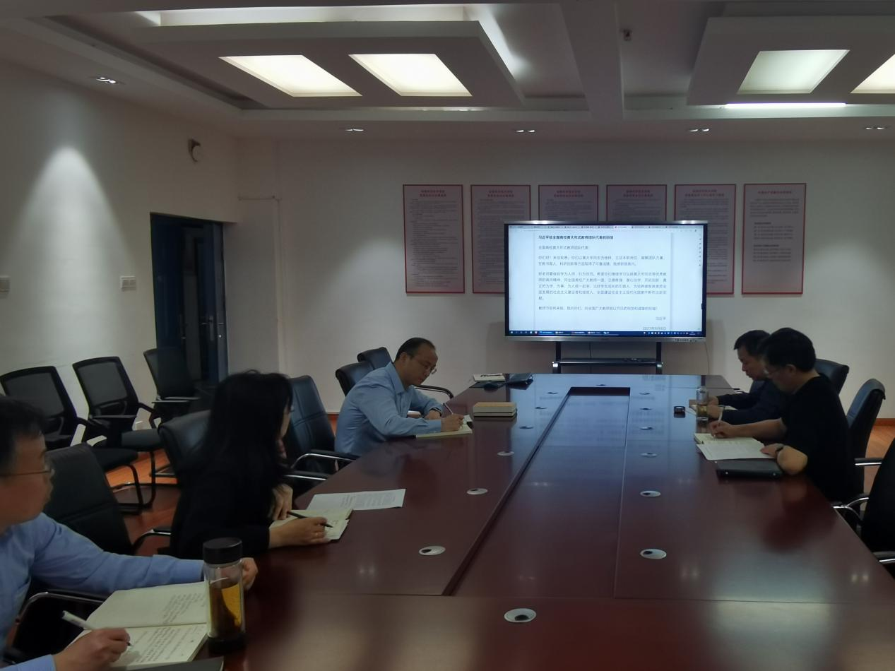 会上,全体班子成员集体学习了习近平总书记在全国教育大会上的讲话精神、考察清华大学和中国人民大学的讲话精神以及给全国黄大年式教师团队代表和给中国农业大学科技小院的同学们的回信精神,认真观看了视频《时代楷模:黄大年》。