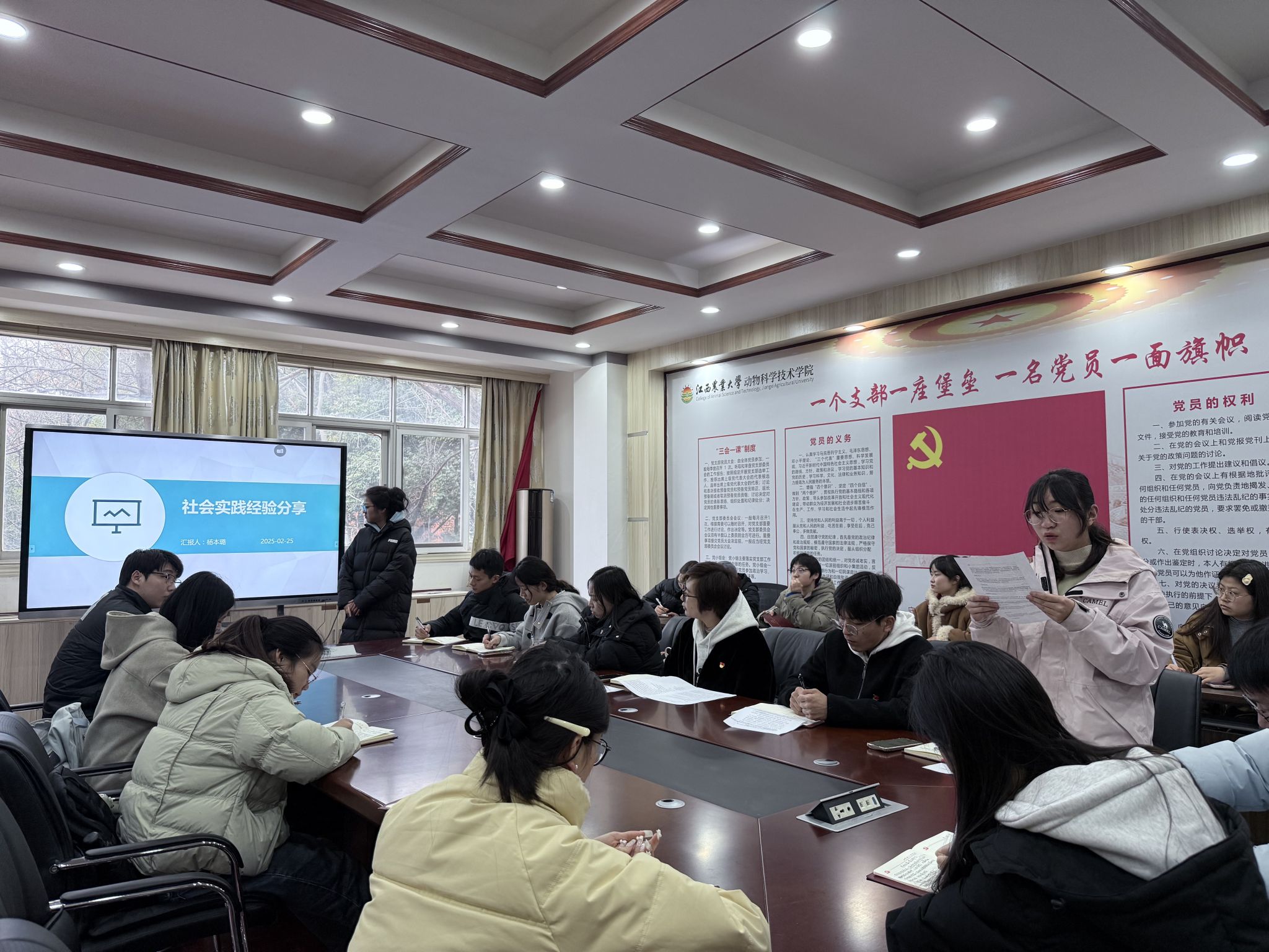 活动中,支部党员杨本璐主动分享丰富的社会实践经验,从前期的准备工作,到执行过程中的艰难攻克,再到收获成果时的感悟,为大家提供了全面的指导。2024年暑假“三下乡”社会实践活动中,杨本璐在指导老师的指导下带领团队前往东乡泥鳅科技小院,走入田间地头、深入乡村院落,进行了科技支农活动,用科技创新赋能乡村振兴,获评省级优秀团队。