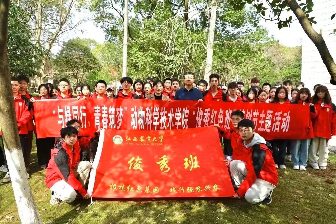 植树护林,守护“生态绿”。“同学们,植树过程中最主要的是挖坑、填土、植树、浇水、覆土、固定等环节......”“俊秀红色班”在林学院刘玮老师的讲解下,学习植树的注意事项与养护要点,开展以“与绿同行,青春筑梦”为主题的义务植树志愿服务活动。师生们挥锹培土、提水浇苗,以实际行动践行和落实习近平总书记关于生态文明和美丽中国建设的重要论述。一颗颗新栽种的树苗在和煦的春风中展现勃勃生机。