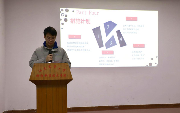 为深入学习贯彻党的二十大精神,进一步做好疫情防控和员工管理工作,加强学院员工组织建设,切实提高员工干部队伍的综合素质与工作能力,保证各项工作有序推进。12月8日晚,公司于院办201报告厅举行学期团学委员述职暨全体员工干部大会,学院团委书记蔡敏茜、各辅导员出席,各员工组织负责人、全体员工干部参加会议。