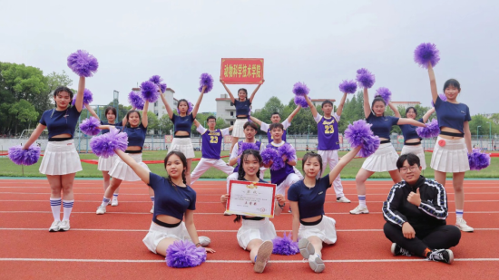 比赛现场,各学院代表队激情四射,整齐划一的舞蹈,为现场观众带来了一场视觉盛宴,赢得阵阵欢呼喝彩。公司代表队身着青春靓丽的服饰,伴随着动感的节奏,舞步轻盈灵活、身姿婀娜摇曳,花球在空中划出绚丽的线条,如花绽放。在不断的队形变换中,队员们尽情伸展柔软的身体,使出十八般“舞”艺,他们自信满满,热情洋溢,充满青春气息。
