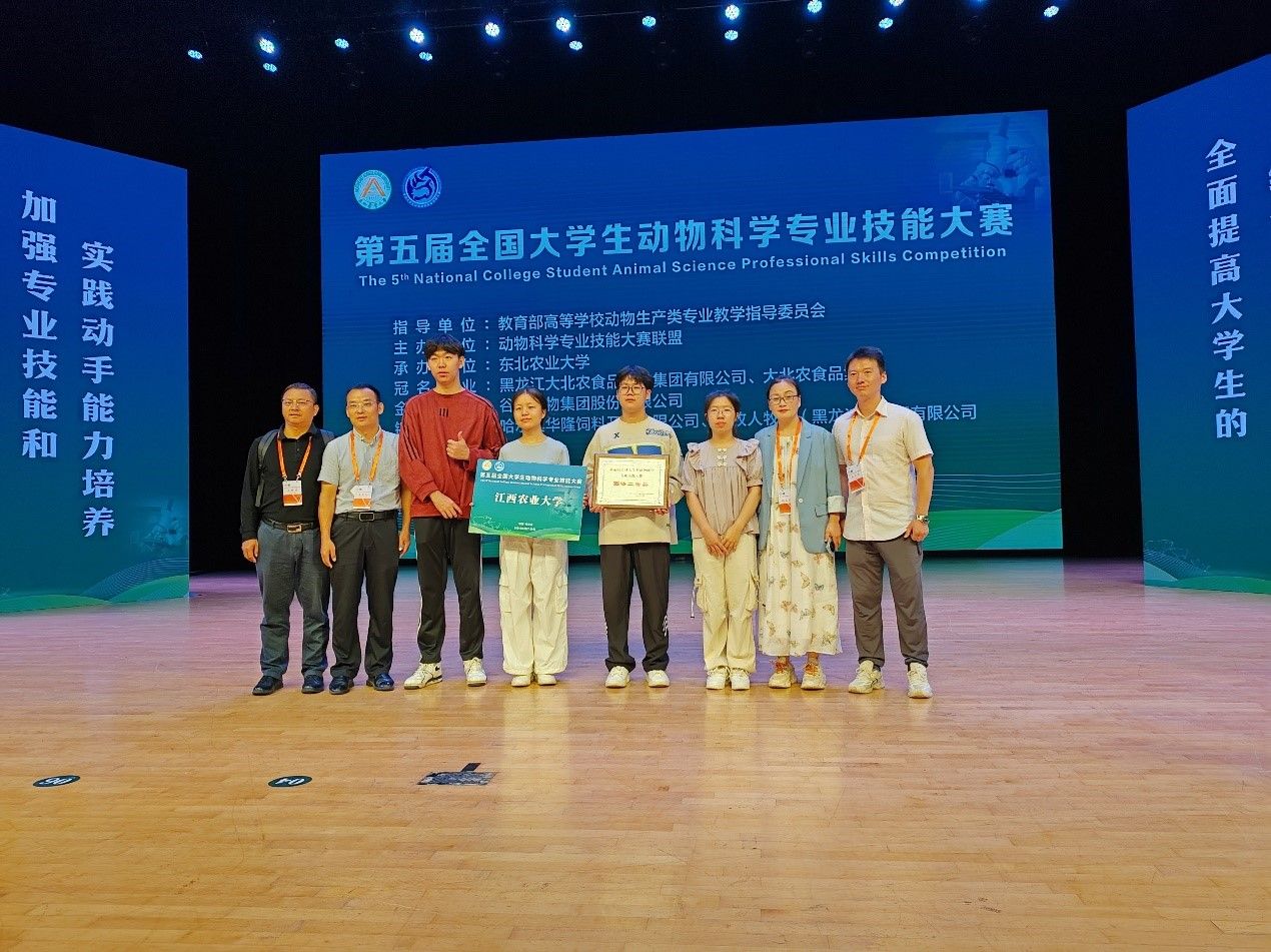 2024年8月27日至29日,由教育部高等学校动物生产类专业教学指导委员会指导、动物科学专业技能大赛联盟主办、东北农业大学承办的第五届全国老员工动物科学技能大赛在黑龙江省哈尔滨市举行。公司派出由动物科学专业负责人黎观红为领队教师,吴小波、毛辉荣、吴国云、薛夫光和谌俊为指导教师,史佳玉、黄琳、李文恺、邓政凯和肖蕾等5位同学组成的代表队参加比赛。经过紧张而激烈的角逐,公司代表队在比赛中表现出色,最终荣获团体二等奖。