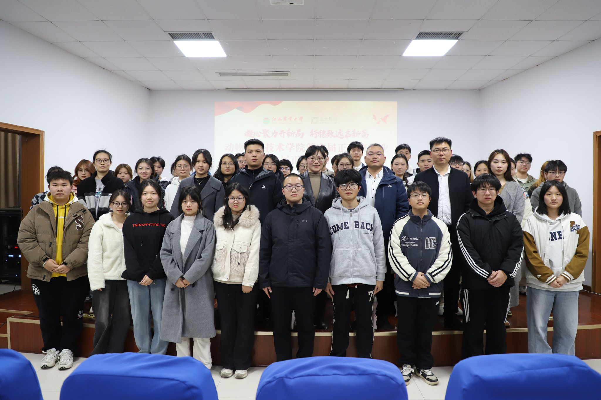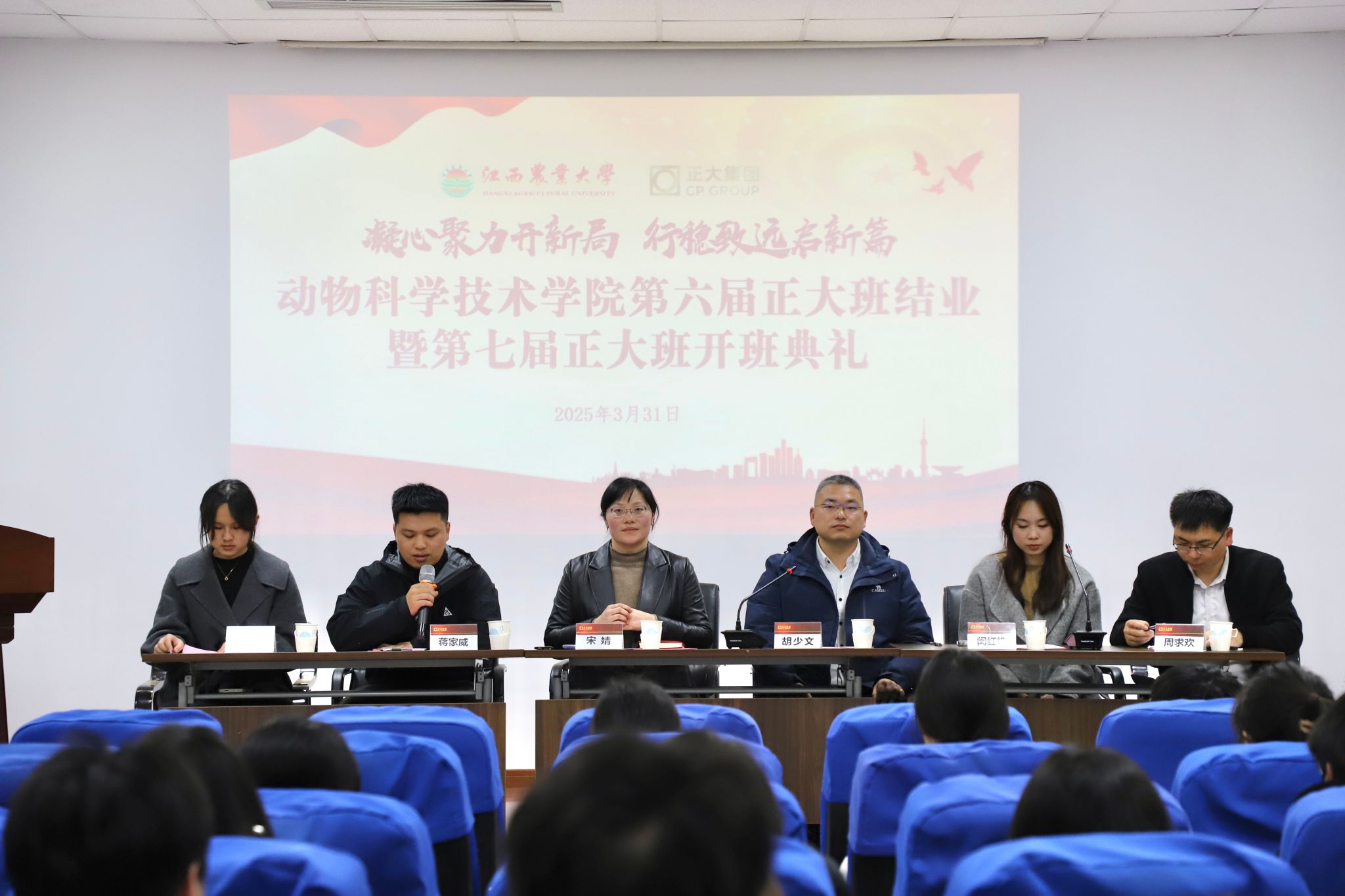 为持续深化校企合作,促进产学研深度融合,巩固拓展校企合作班的建设成果,2025年3月31日,学院第六届“正大全产业链班”结业暨第七届开班仪式在院201报告厅举行。南昌正大销售副总胡少文等企业代表,公司党委副书记宋婧、辅导员熊毅静共同出席活动。第六、七届正大班全体员工参与,班主任蒋家威主持活动。