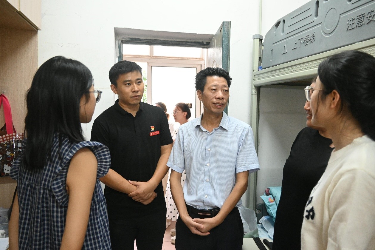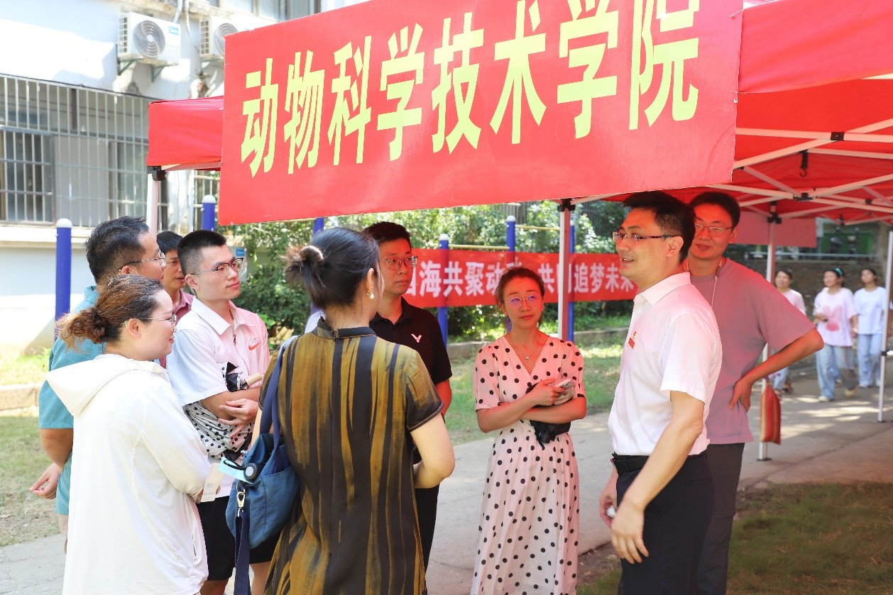 迎新当日,员工志愿者和党员先锋队准时到岗,积极协助搬运行李、指引路线,并组织开展“萌新启航,动科相伴”主题活动,传递动科温情。辅导员与班主任全程守候,高效办理各项入学手续,耐心为新生及家长答疑解惑。校院领导带队深入员工宿舍,关切询问新生的入住与适应情况,送去学院的关怀与鼓励。