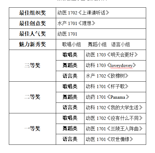 见附件二《2017动科院新生才艺大赛比赛结果》