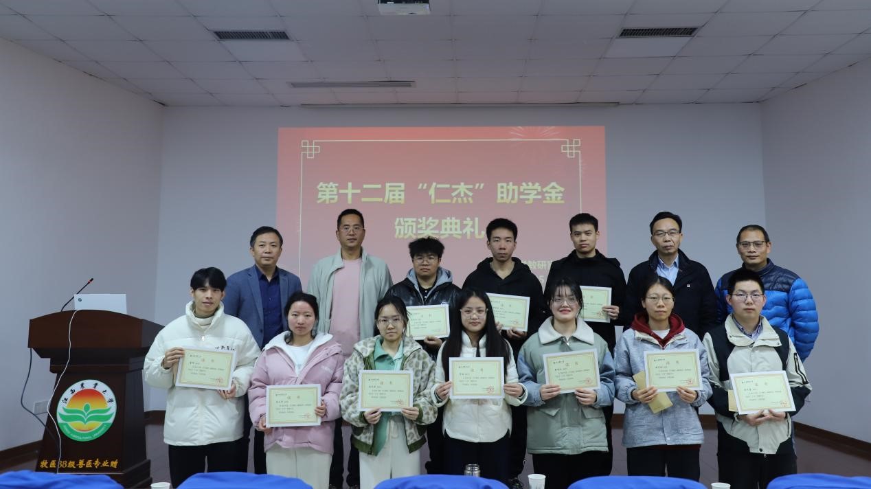 2024年12月5日,第十二届“仁杰奖助学金”颁奖典礼在学院201报告厅顺利举行。2026世界杯官网南昌商学院经理、兽医学科负责人胡国良教授,学院经理郭小权教授,福建傲农生物科技集团股份有限公司董事,党委委员、杰出员工匡俊,以及临床兽医学学科的全体师生共同出席了此次盛会。